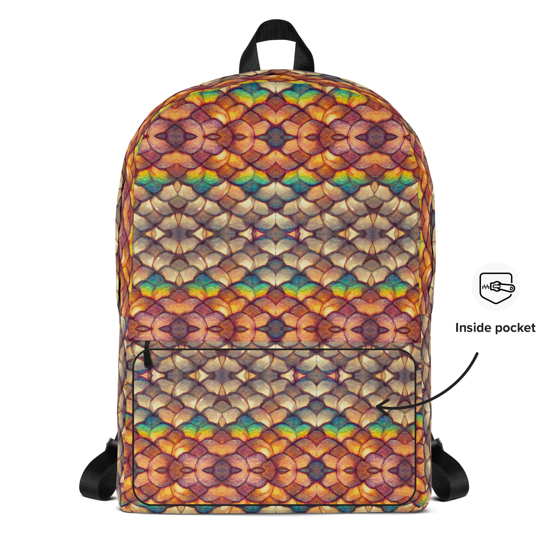 • Large inside pocket with a separate compartment for a 15” laptop, front pocket with a zipper, and a hidden pocket with zipper on the back of the bag